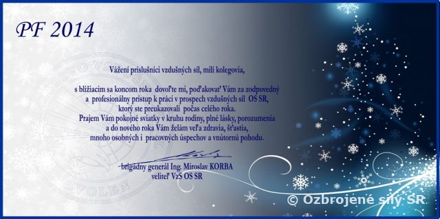 Vianočné a novoročné prianie veliteľa Vzdušných síl OS SR